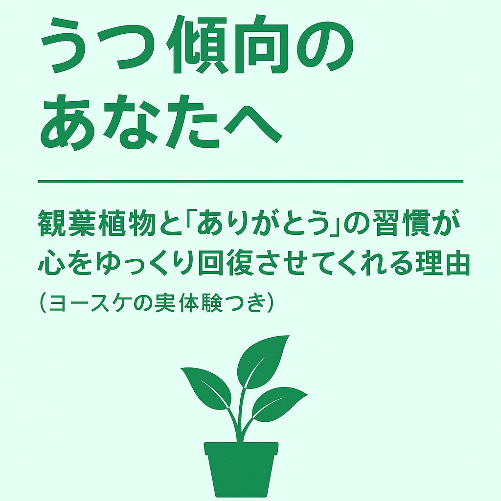 うつ傾向のあなたへ——観葉植物と「ありがとう」の習慣が心をゆっくり回復させてくれる理由(ヨースケの実体験つき) 2025.12.20 スピリチュアル実体験/心の癒し yosuke0706give 引き寄せ実験生活365days!